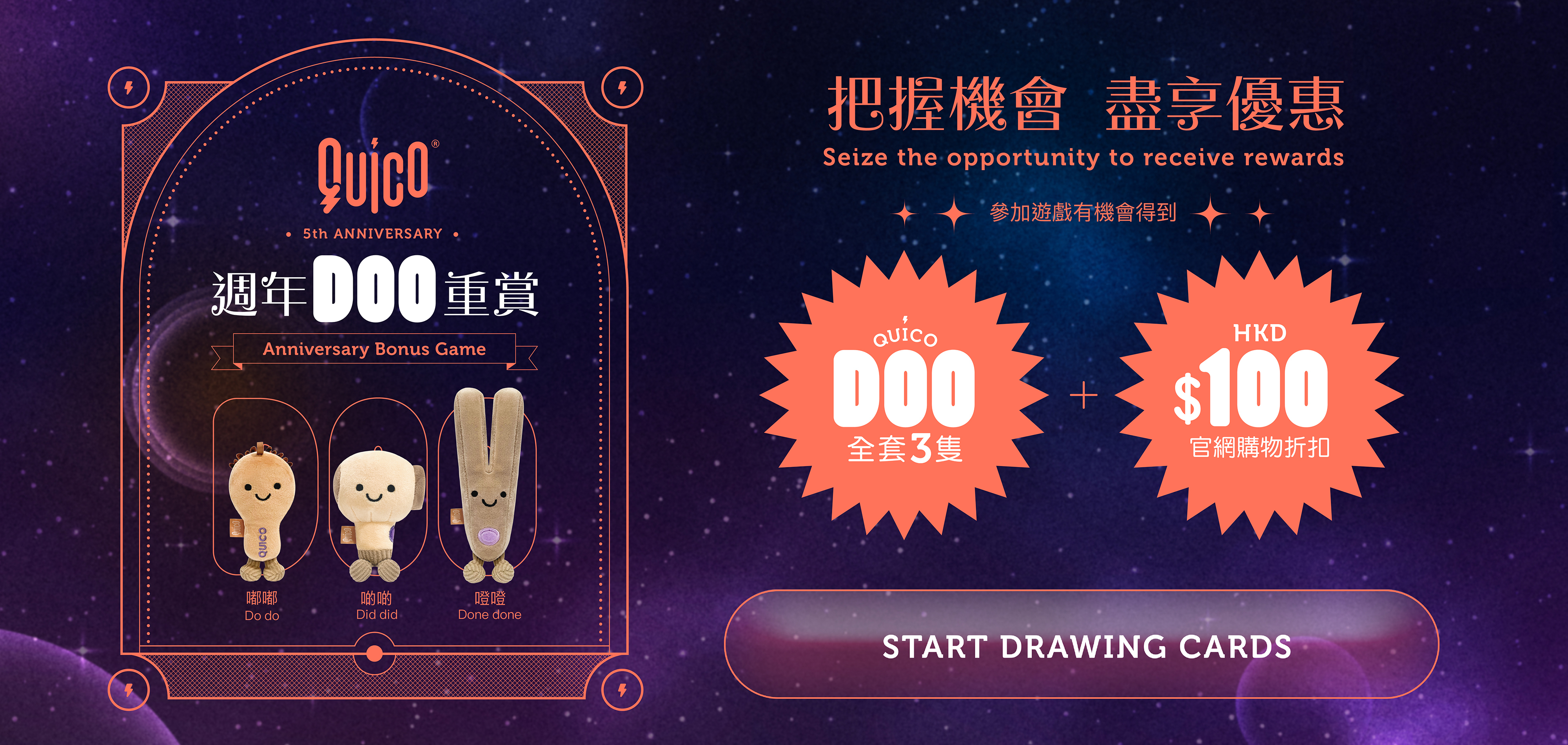 #5週年 #狂賞 #Doo重賞 #多重賞 #QUICO #QUICODoo #買機送機 #公仔遊戲 #100%中奬