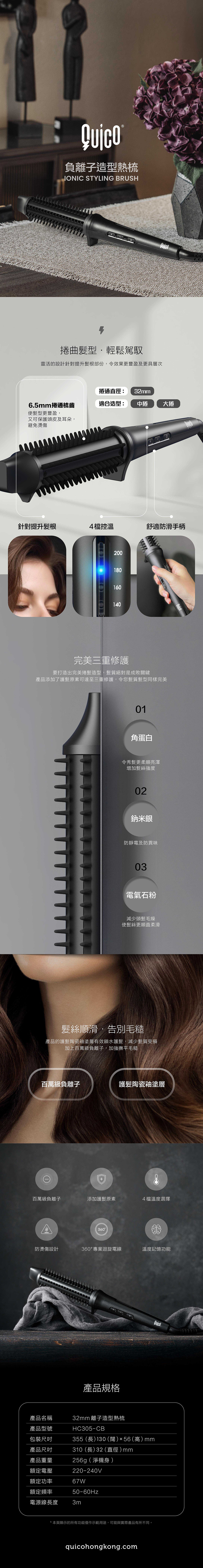 QUICO 負離子造型熱梳,發熱梳齒設計,針對髮根部分,輕鬆打造豐盈感髮型。