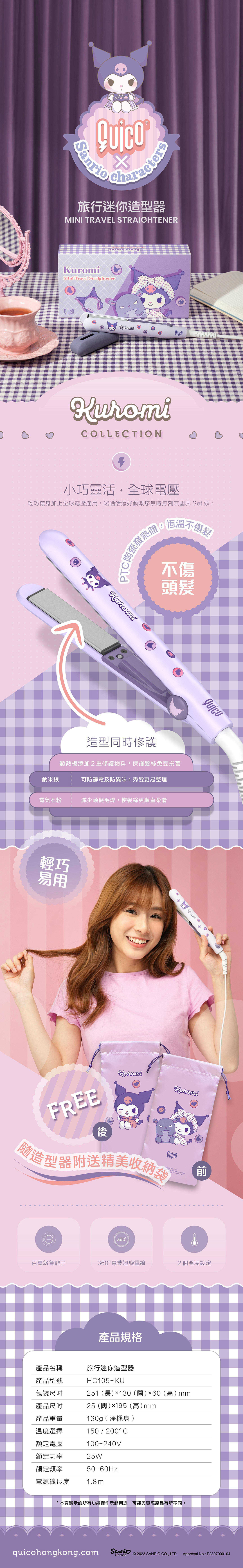 Quico聯乘Sanrio characters推出兩套不同風格嘅造型產品。一齊跟時尚達人Kuromi(酷洛米)同埋慵懶教主Pompompurin(布甸狗)捉住夏日嘅尾巴用唔同嘅髮型工具打造滿分髮型!