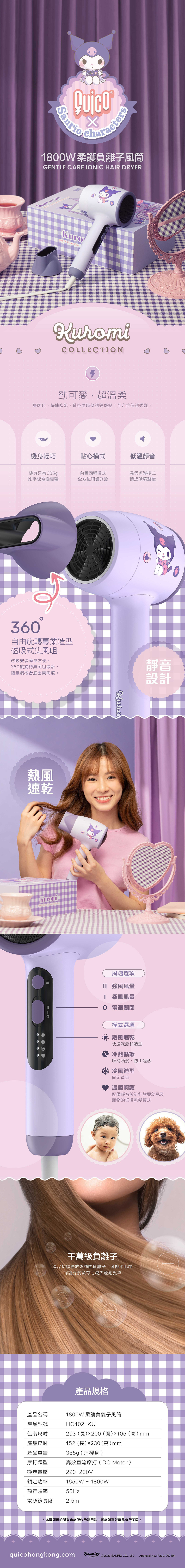 Quico聯乘Sanrio characters推出兩套不同風格嘅造型產品。一齊同時尚達人Kuromi(酷洛米)、慵懶教主Pompompurin(布甸狗)展開輕簡美嘅變髮之旅。